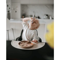 - Siliconen servies bestaande uit bord, lepel, beker en kom.