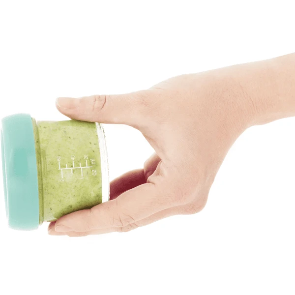 Gezonde groenten, puree met verschillende soorten fruit en vlees: er gaat niets verloren. De babyfoodschepjes zijn voorzien van een etiket met milliliter specificaties en Amerikaanse vloeibare ounces, zodat u altijd precies de juiste hoeveelheid babyvoeding bij u heeft. Het deksel heeft een herschrijfbaar oppervlak waarop het recept en de bereidingsdatum kunnen worden