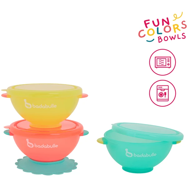 Badabulle biedt u een slim concept voor deze fase: Onze papkommen met deksel, die zowel tijdens de maaltijd als onderweg gebruikt kunnen worden als portiebakjes voor het vervoeren of bewaren van aanvullende voeding.