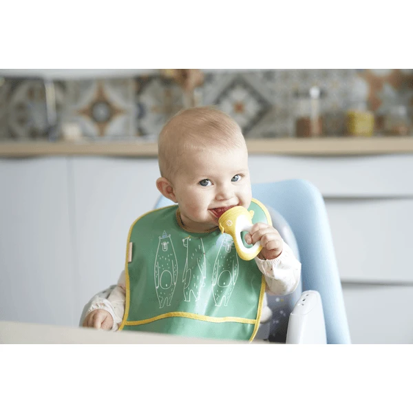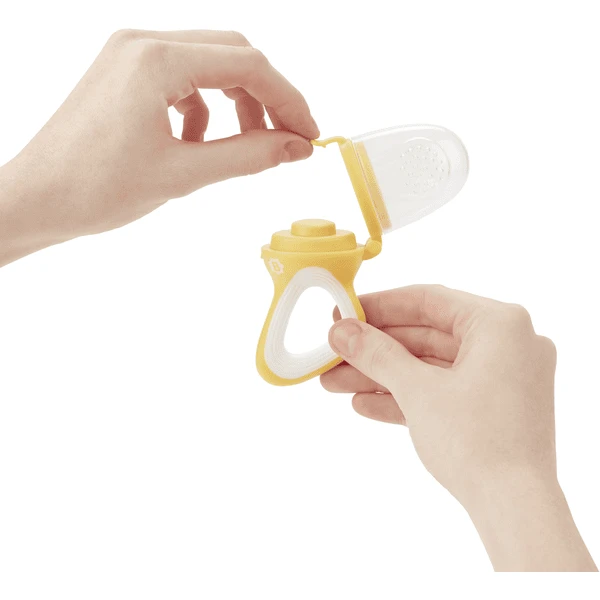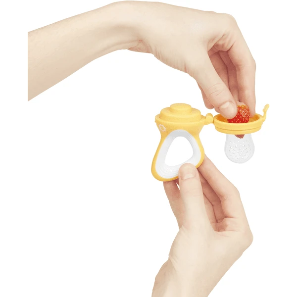 Het doen van koud voedsel in de vruchtenspeen heeft ook een kalmerend effect op het kind wanneer het tandjes krijgt en pijn heeft. De vruchtenspeen is zeer gemakkelijk schoon te maken.