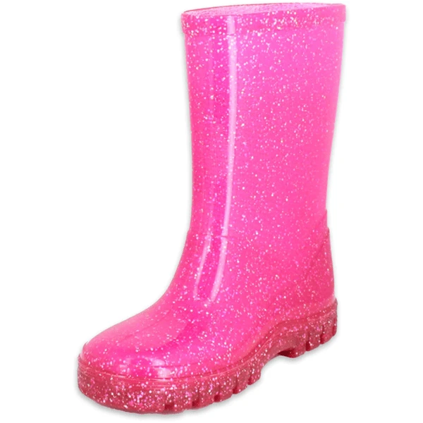 Favoriete kleur glitter? Robuuste regenlaars voor meisjes in roze glinstert gewoon het slechte humeur weg bij regenachtig weer. Beschermt tegen nattigheid en houdt de voeten droog. De grove profielzool geeft de kinderen optimale grip. Perfecte laars voor kleuterschool of speelplaats.