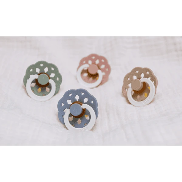 - Twee BIBS fopspenen Boheme 6-18 maanden in de kleur Blush en Vanilla Night Glow