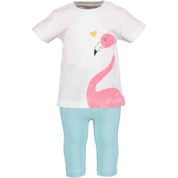 Modieuze set bestaande uit een T-shirt met een cool Print motief en drukknopen op de schouder voor het gemakkelijk aan- en uitkleden. Bijpassende Capri-broek met een elastische tailleband.