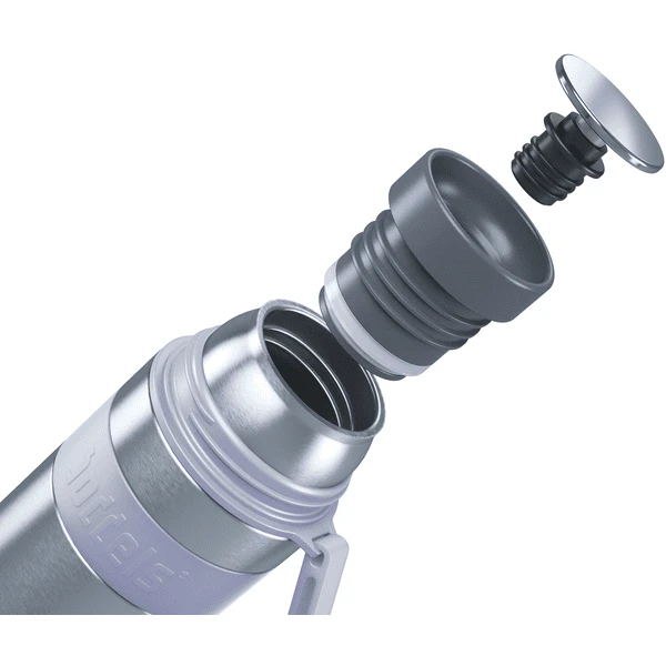 Als de geïsoleerde fles open is, kunt u schenken en drinken vanaf elke kant. De sluiting gaat rondom open door te drukken.