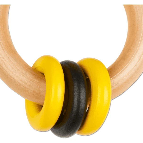 Kleine Borussians grijpen de EMMA ring. Deze houten ring wordt geleverd met een EMMA hoofd. Het wekt natuurlijke instincten op, zoals visuele waarneming en fijne motoriek.