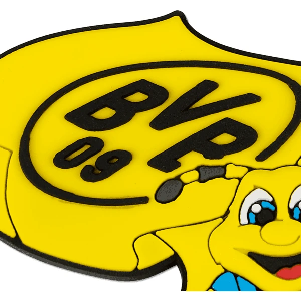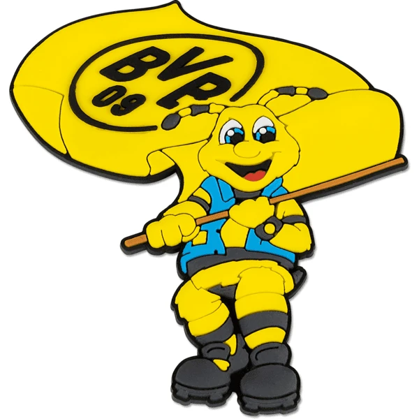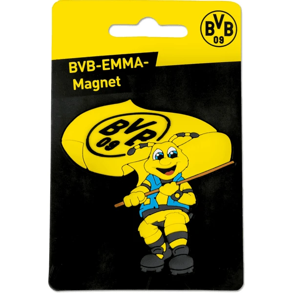 EMMA blijft plakken! De grappige BVB-magneet toont mascotte EMMA bijvoorbeeld als vlaggenzwaaiend meisje in spijkerpak, vlak voordat de profs het veld opmarcheren. Zo kun je altijd het schattige bijtje op de koelkast of de magneet board in de gaten houden en EMMA de belangrijkste notities laten bewaren.