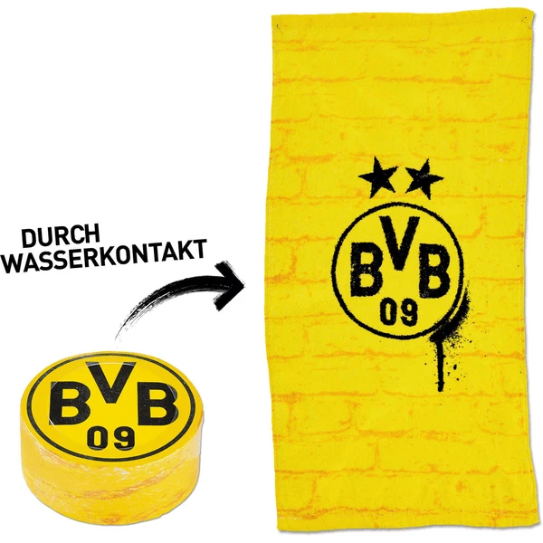Zo worden kleine stakers achter de oren droog achter de oren. En overal anders. Soms als aanvaller, soms als keeper, in ieder geval altijd in beweging en tussendoor staat het BVB-logo. We kunnen niet beloven dat de kleine wervelwinden tijdens het drogen stil zullen blijven staan. Maar ze zullen zeker meer plezier hebben. Materiaal: 100 % katoen Afmetingen: 60 x 30 cm BVB-logo