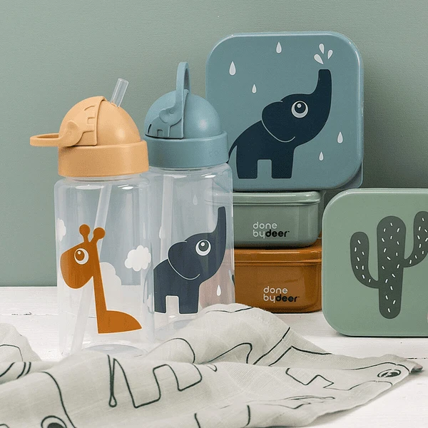 De drinkfles met lekvrij deksel is perfect voor onderweg en motiveert de kleintjes om genoeg te drinken.