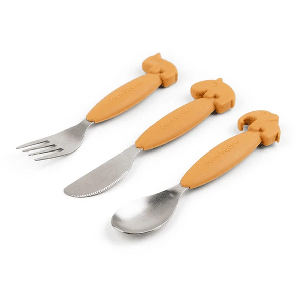 Het schattige bestek heeft zachte, antislip siliconen handvatten en zal snel een favoriet worden. Het formaat van het kinderbestek is perfect voor zelfstandige peuters die net zelfstandig leren eten.