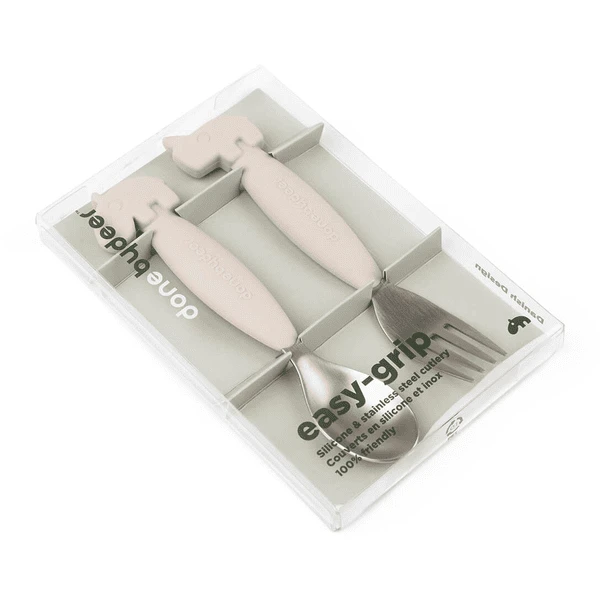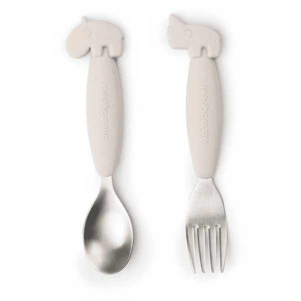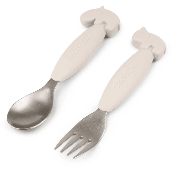 Done by Deer ™ Easy-grip lepel en vork set, Deer friends Sand
