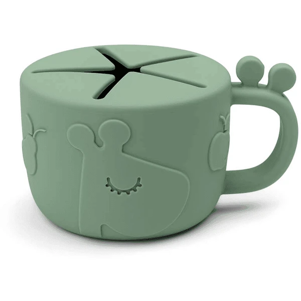 De groene beker is erg praktisch voor kleine snacks voor onderweg. Uw kind kan het handvat met één hand vasthouden terwijl de andere reikt naar snacks. Praktisch in de kinderwagen, in de auto en voor uitstapjes.