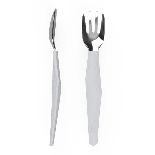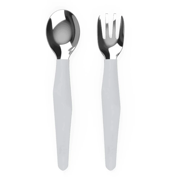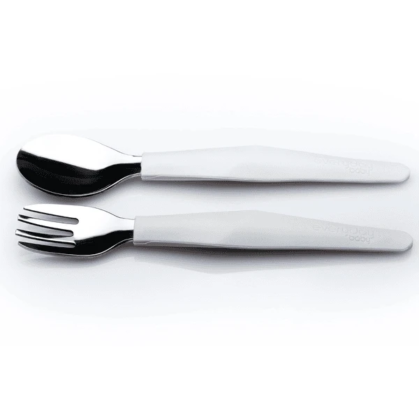 Is het tijd om alleen te leren eten? De Everyday Baby Het “Leren eten”-bestek bestaat uit een roestvrijstalen vork en lepel met een slim ontworpen siliconen handvat. Het handvat design helpt peuters om het bestek op een natuurlijke manier vast te houden, net als volwassenen. Past perfect in de handjes van kleine kinderen om hen te helpen zelfstandig te leren eten. Stijlvol. Design . Gemaakt van hoogwaardige materialen: roestvrij staal en silicone.