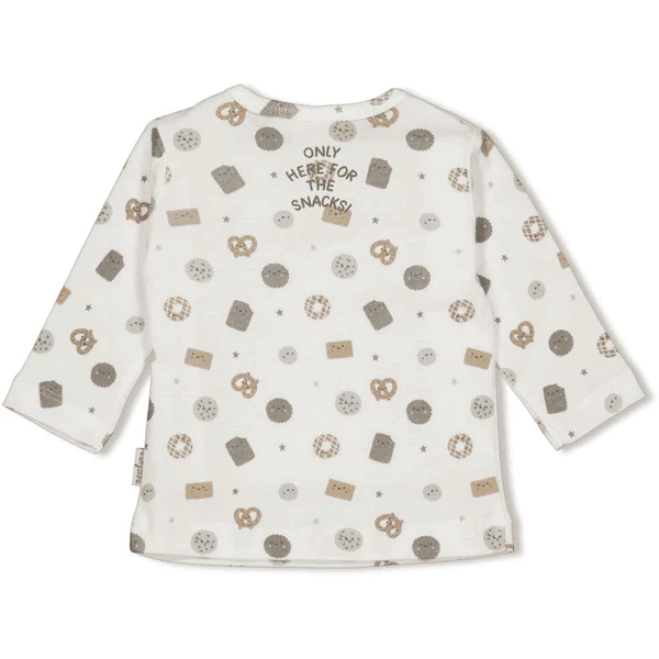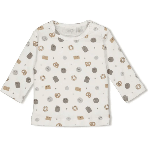 Schattig shirt met lange mouwen in wit met kleurrijke Cookie – Allover print . Drukknopen op één schouder maken het gemakkelijk aan en uit te trekken. Het overhemd is gemaakt van 100% katoen en garandeert een comfortabel gevoel.