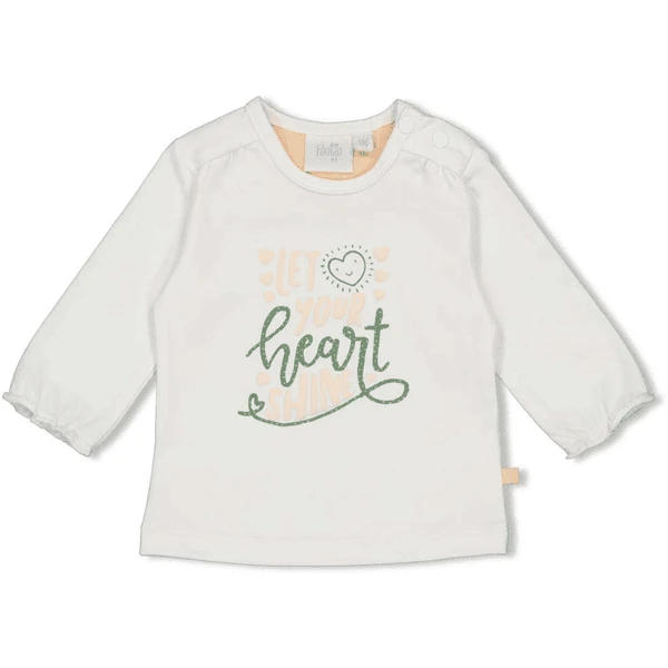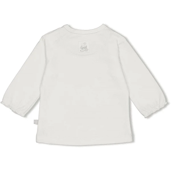 Mooi shirt met lange mouwen in wit met groot opschrift print op de borst. De manchetten met ruches geven de top een speelse toets. Drukknopen op de schouder maken het gemakkelijk aan en uit te trekken.