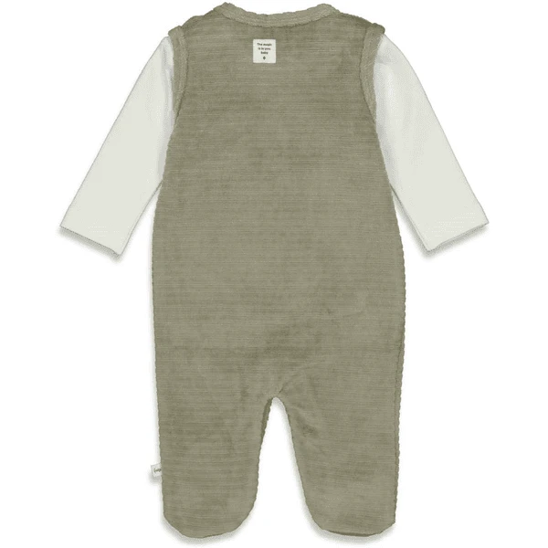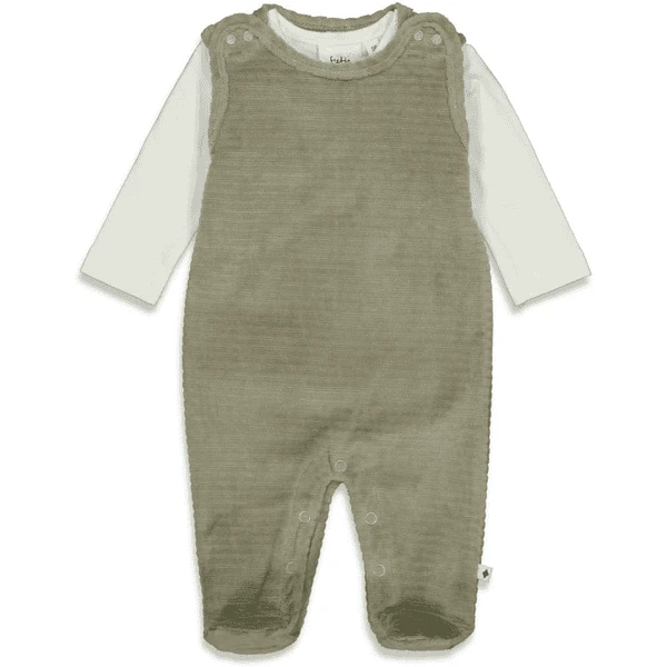 Schattig rompertje van superzacht fluweel. Zowel het rompertje met lange mouwen als het babypakje hebben drukknopen op de schouders en in het kruis om het aan- en uitkleden te vergemakkelijken.
