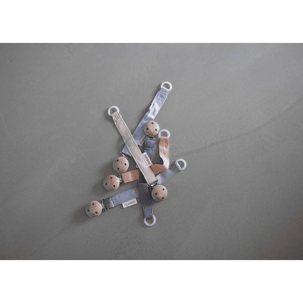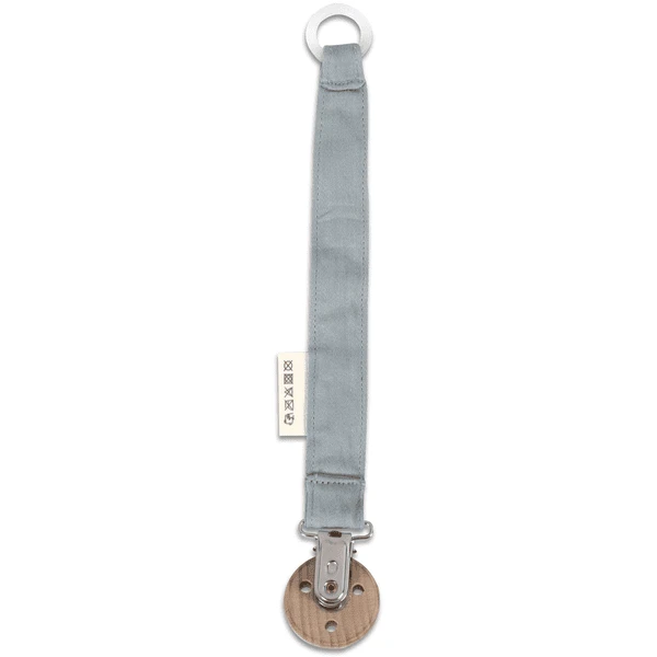 De fopspeenketting is gemaakt met een nikkelvrije Metal lclip op een houten knoop die aan de kleding van de baby wordt bevestigd, zodat de fopspeen altijd in de buurt is en niet op de grond valt. Aan het andere uiteinde kan de dummy gemakkelijk aan de siliconenring van de dummyketting worden bevestigd. Goedgekeurd volgens EN 12586.
