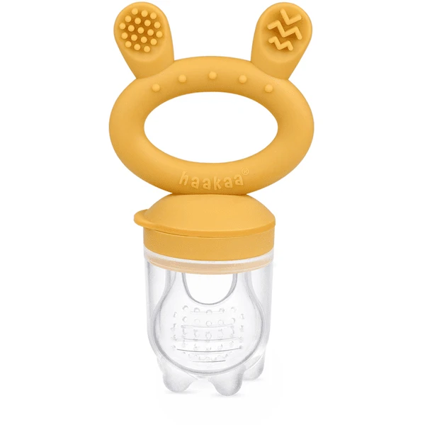 - Zacht siliconen zakje met kleine gaatjes die alleen kleine, verteerbare stukjes voedsel doorlaten