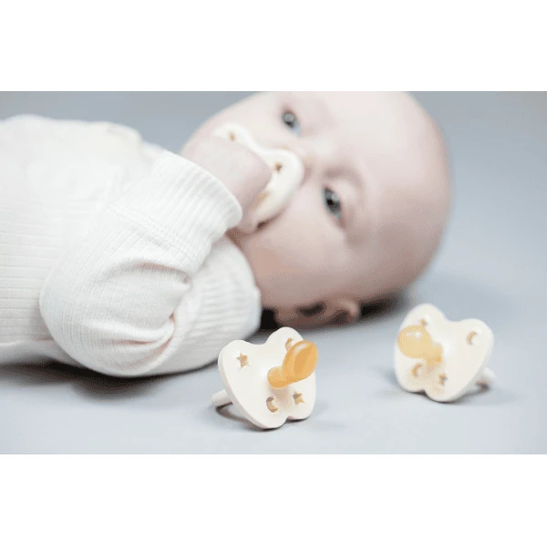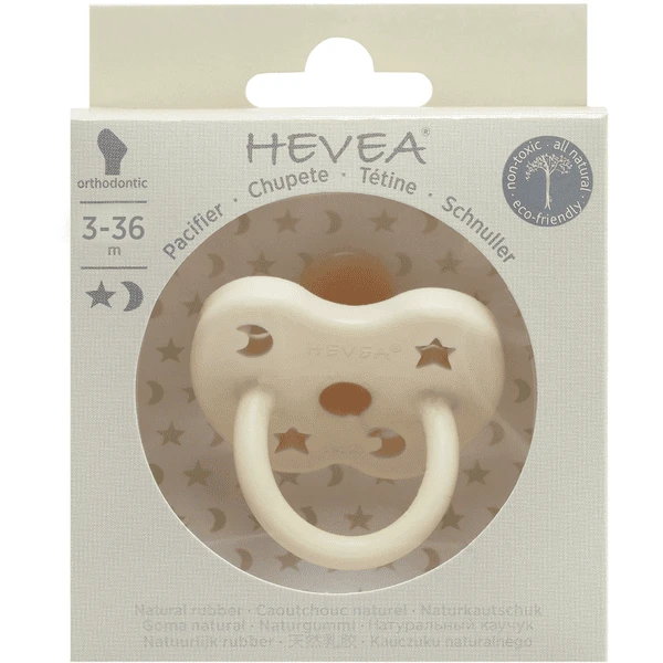 Let op! Hevea De fopspenen zijn gemaakt van 100% natuurlijk rubberlatex, dat met de tijd donkerder wordt.