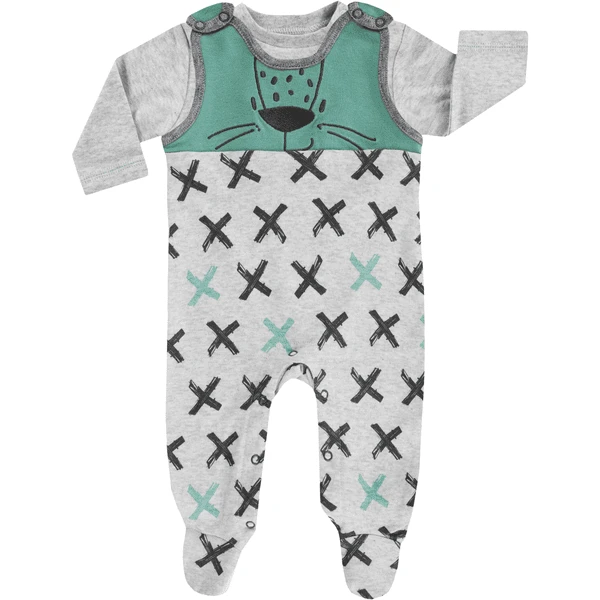 De JACKY romperset bestaat uit een comfortabele romper en een knuffelbaar shirt met lange mouwen en drukknoopjes bij de halslijn. De fluwelen romper heeft praktische drukknopen op de schouders en in het kruis. Zo kunt u hem gemakkelijk aan- en uittrekken en een schone luier omdoen. Met de zoete applicatie en de opdruk Allover is het tweedelig stuk een echte blikvanger.