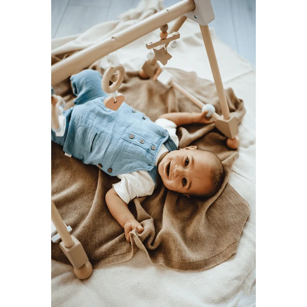 - Modern es Design : De modern e mousseline stof in de kleur mint is te combineren met vele oufits van je jongen.