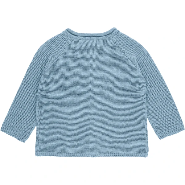 - Modern it Design : De rolzoom aan de halslijn en de knopen completeren de Design in de kleur blauw in grove gebreide look.