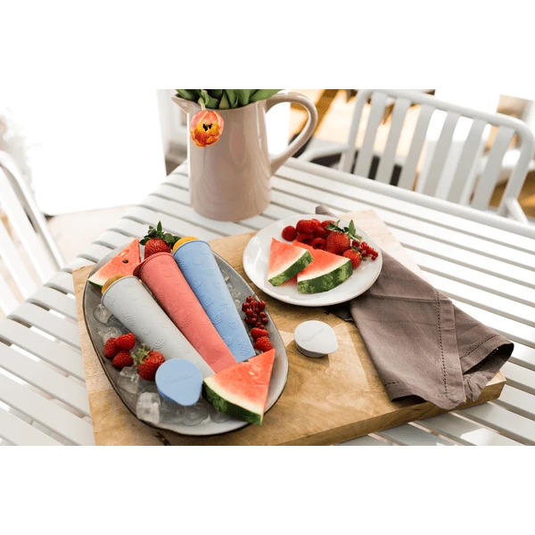 Doe gewoon wat sap, kleine stukjes fruit of yoghurt in de vormpjes, doe vervolgens het deksel erop en na een paar uur in de vriezer kunt u genieten van uw zelfgemaakte ijsje.