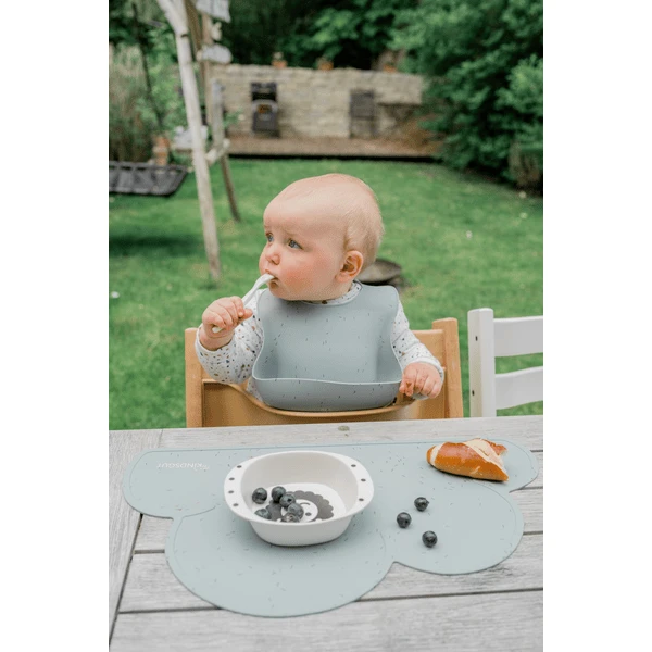 De placemat is gemaakt van milieuvriendelijke siliconen en biedt dus een veilige houvast en ondersteunt uw kind bij het leren alleen te eten.