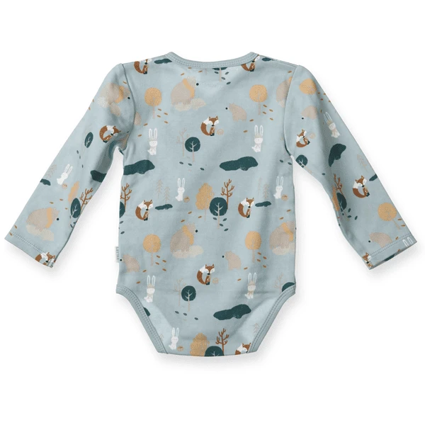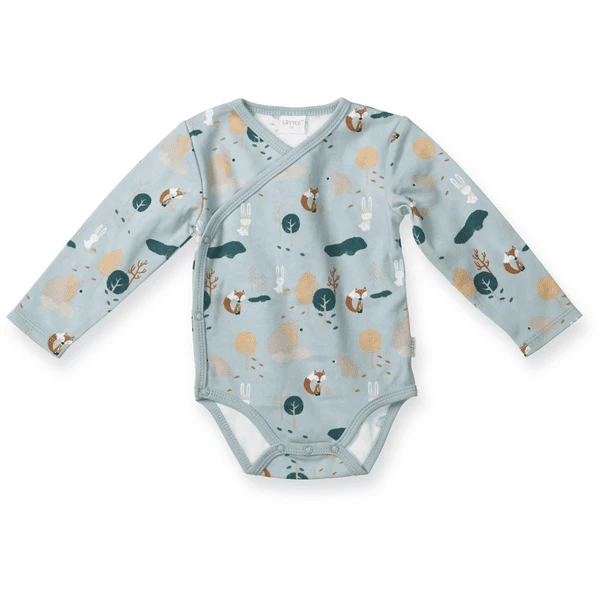 Een schattig wikkellijfje met schattige bosdiermotieven en met praktische drukknoopjes om snel en gemakkelijk aan- en uit te kleden.