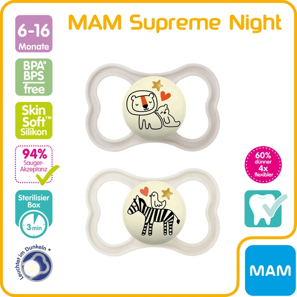 - De MAM Supreme Night fopspeen is de ideale combinatie van de MAM Perfect en de MAM Air.