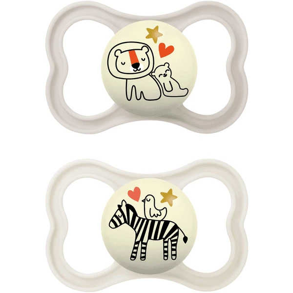 - 2x MAM Nachtfopspeen Supreme Night Silicone, 6-16 maanden, Leeuw/Zebra
