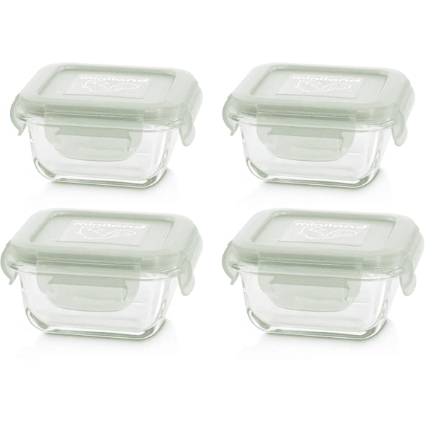 Deze set bestaat uit 4 milieuvriendelijke verpakkingen met een inhoud van 160 ml elk gemaakt van zeer duurzaam glas met een lange levensduur. Dit materiaal is ook transparant en maakt het dus mogelijk om de inhoud van de containers precies te zien. De containers hebben een ideale grootte om kleine porties zelfgemaakte babyvoeding, melkpoeder, fruit, etc. apart op te slaan.