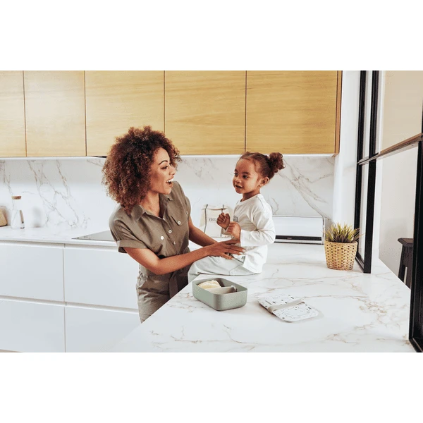 - Beide containers zijn voorzien van een siliconen deksel voor een optimale houdbaarheid van het voedsel en het behoud van de smaak en het aroma van uw zelfbereide voedsel.