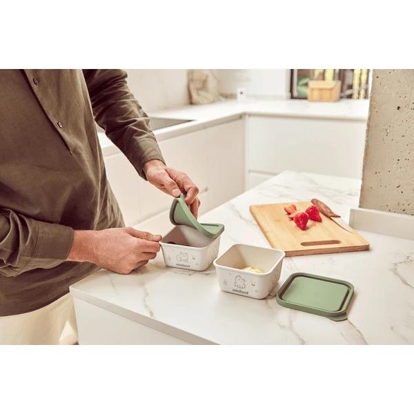 - Deze milieuvriendelijke set, ideaal voor het bewaren van zelfgemaakte babyvoeding, bestaat uit 2 bakjes voor alle soorten vast voedsel met een inhoud van 400 ml.