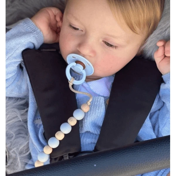 - De fopspeenketting kan met de hand gereinigd worden in een warm sopje, houd de clip uit de buurt van water en droog hem af.