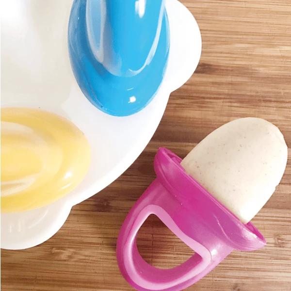 De diepvriesvormpjes met kleurrijke steeltjes helpen niet alleen om geïrriteerd tandvlees te kalmeren. Ze helpen uw kind ook om nieuwe smaken en ingrediënten te leren kennen.