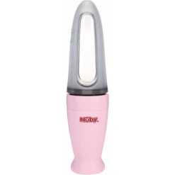Nûby speciale voedingslepel gemaakt van PP met voedingscontainer gemaakt van siliconen 90 ml in roze
