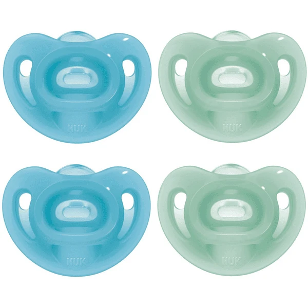 Wanneer je kleintje wordt geboren, is zelfs de meest jonge, tedere babyhuid bijzonder gevoelig. Om deze reden heeft NUK de NUK Sensitive fopspeen ontwikkeld voor de basisuitrusting van de baby. Deze speen is gemaakt van 100% extra zachte siliconen en is daarom bijzonder zacht voor de gevoelige babyhuid. Dankzij zijn soepele en licht gebogen vorm nestelt hij zich bijna als een tweede huid tegen het gezichtje.