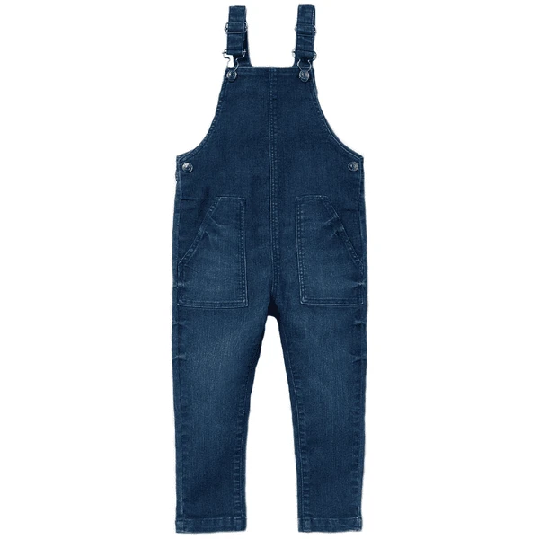 tComfortabele denim tuinbroek van stretchkatoenmix met verstelbare bretels en twee grote opgezette zakken aan de voorkant.