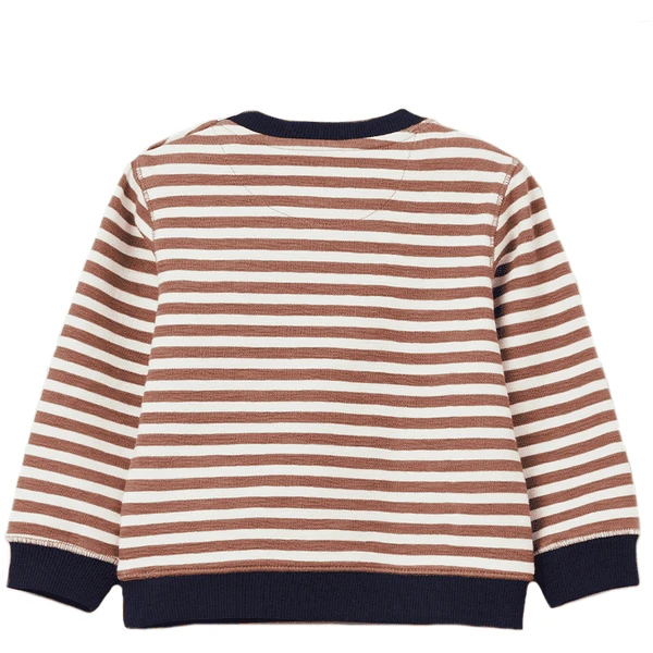 Behaaglijk sweatshirt van stretchkatoenmix met ronde hals en streepdessin. De drukknopen aan de zijkant van de halslijn maken het gemakkelijk om het aan en uit te trekken. Uw lieveling kan kleine spullen opbergen in het zakje. Het puppyborduursel op de borst maakt het shirt tot een echte blikvanger.