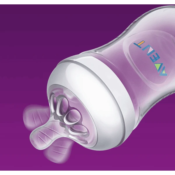 Onze Natural-fles met ultrazachte speen lijkt meer op de borst. De brede, borstvormige speen met flexibel, spiraalvormig design en comfortkussentjes voor natuurlijk aanleggen zorgt dat borst-en flesvoeding gemakkelijk kunnen worden gecombineerd.