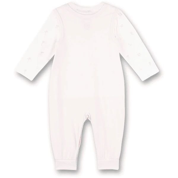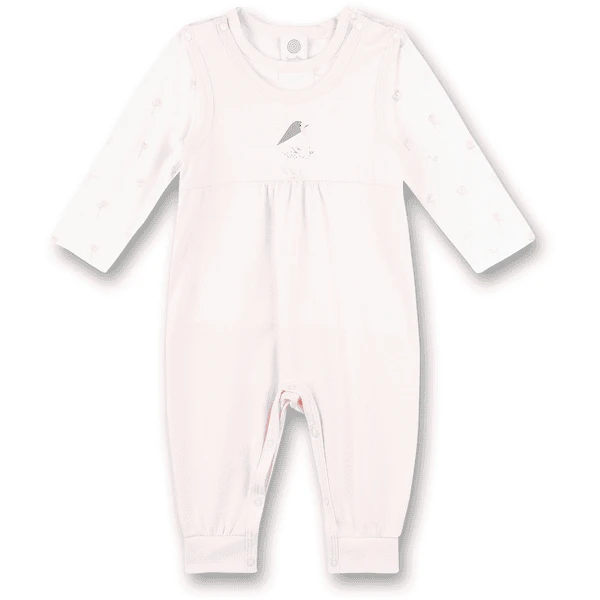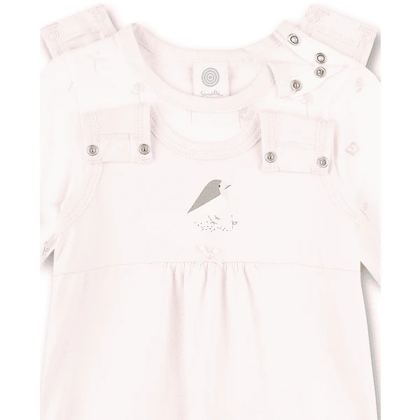 Prachtig setje bestaande uit een romper en shirt met lange mouwen met lieve bloemetjes Allover print . Het lichtroze rompertje maakt indruk met een schattig strikje en het lieve vogeltje. Het aan- en uitkleden wordt vergemakkelijkt door een knoopsluiting op de pijpen en schouders. Het hemd kan aan de hals geopend worden met drukknopen.