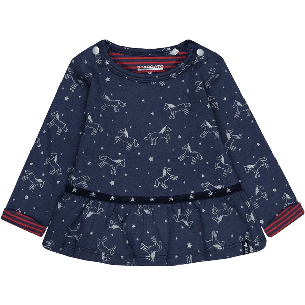 Deze prachtige tuniek van Staccato betoverd in een lief design met een charmante flounce aan de zoom. In een superzachte katoenkwaliteit voelt uw kleintje zich gewoon comfortabel en dankzij de drukknopen op de schouder is het aan- en uitkleden kinderspel voor de ouders. Een must-have voor alle baby’s Girl ! Details: ronde halslijn, logo-patch aan de zoom.
