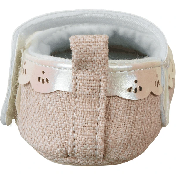 - Baby ballerina van canvas en kunstlederen rand met geperforeerd patroon.