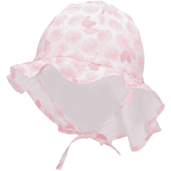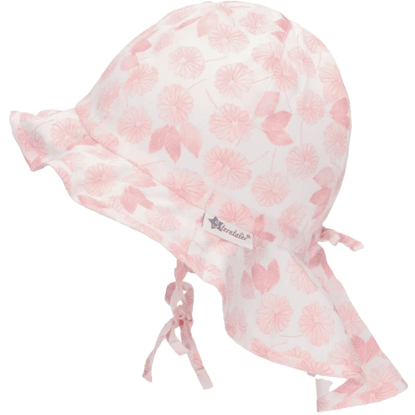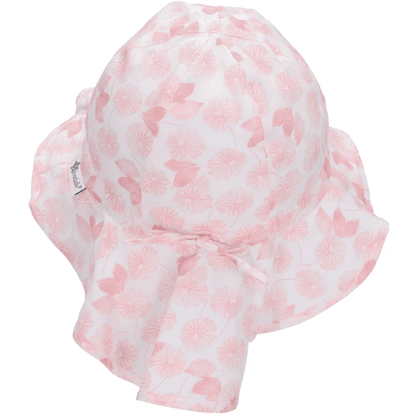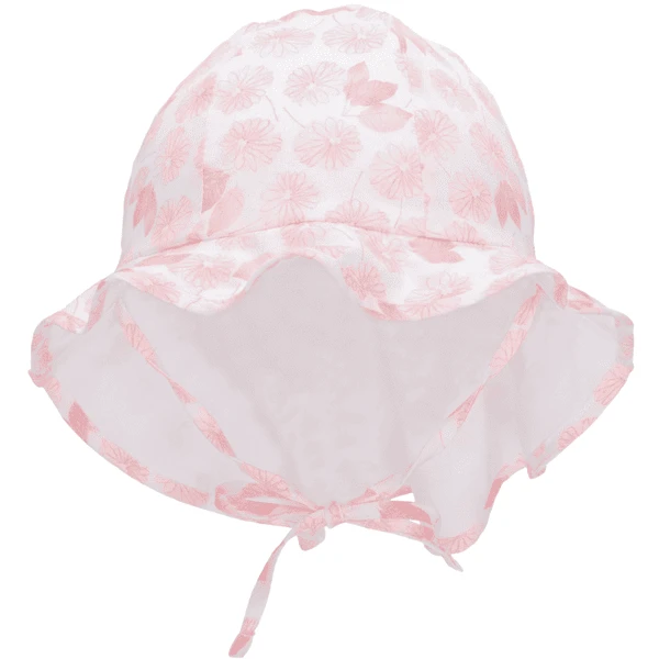 - Zonnehoed van katoenen stof, bedrukt met bloemen en bladeren.