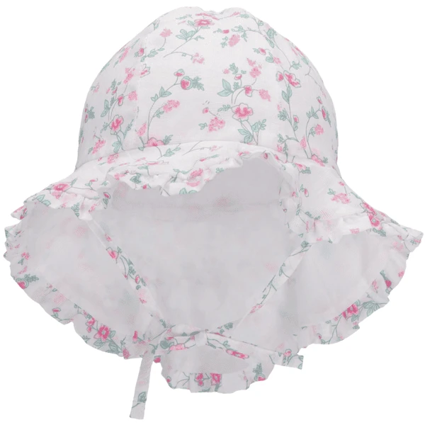 - Zonnehoed van katoenen stof, bedrukt met bloemen.